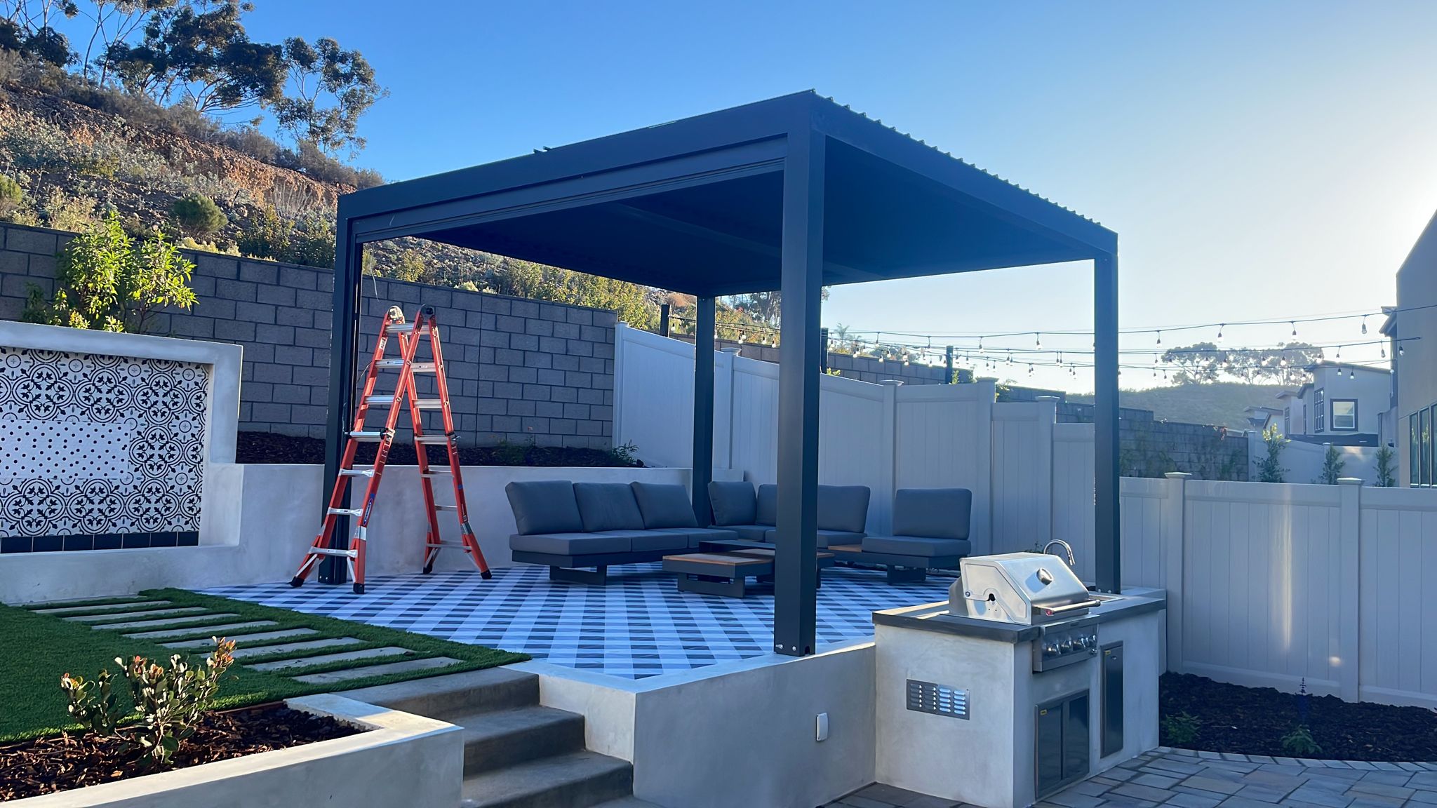 Elevate your outdoor living with our exclusive aluminum pergola! Available as either a kit or as a fully customized build. A testament to exceptional design, quality, and versatility, tailored to elevate your outdoor space with timeless elegance.